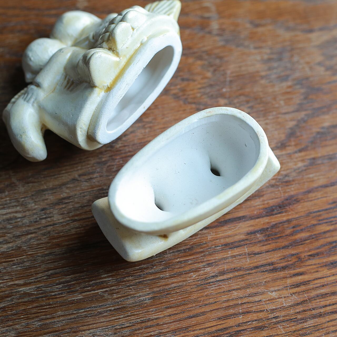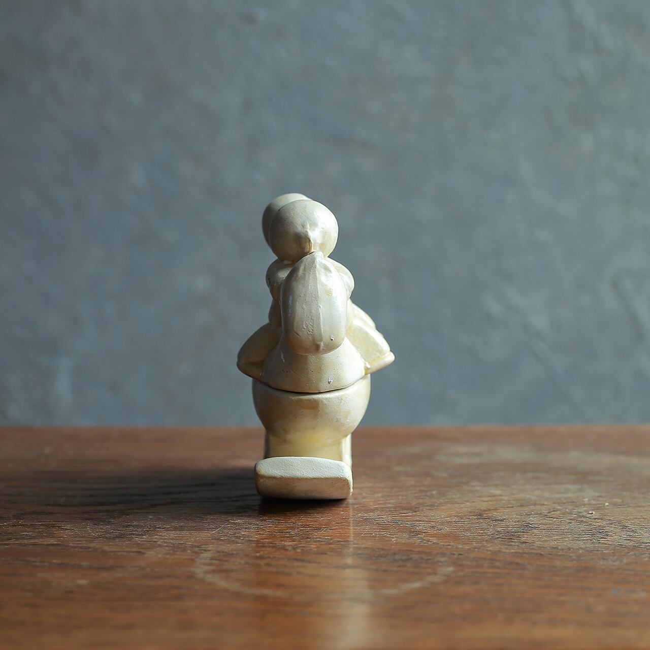 仲睦まじい子供が乗った、陶器の馬の容れ物