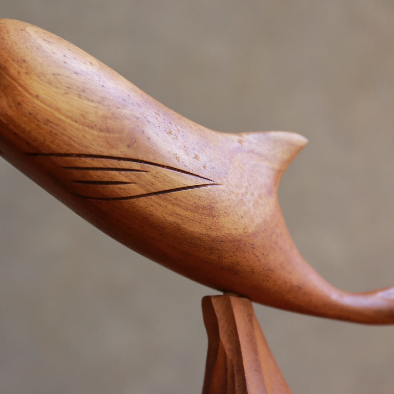 気持ちよさそうに泳ぐ、木彫りのイルカ