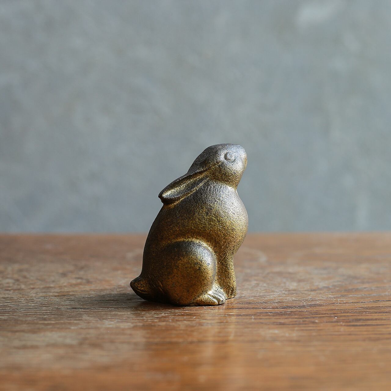 ずっしりと存在感のある、ゴールドのウサギ(子)