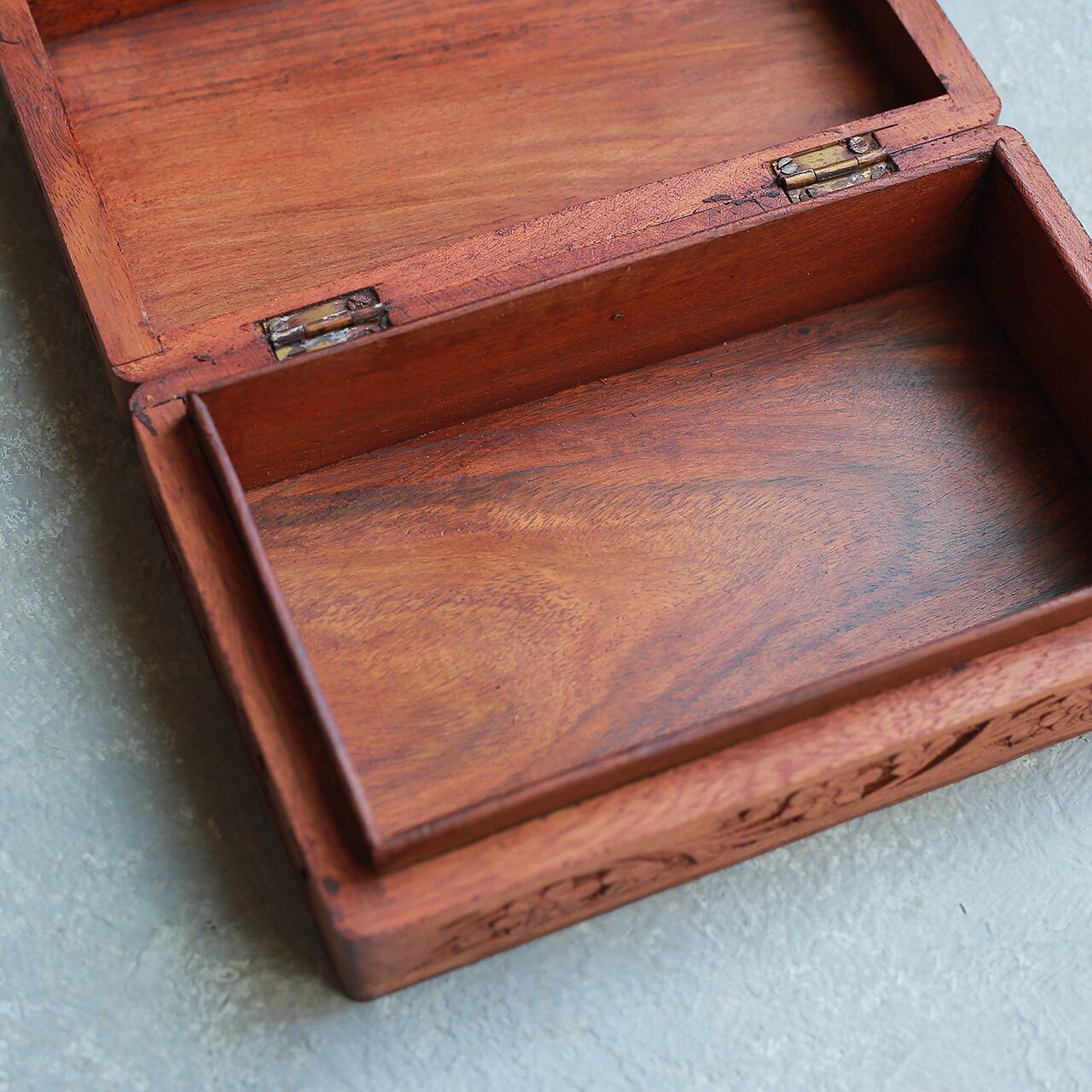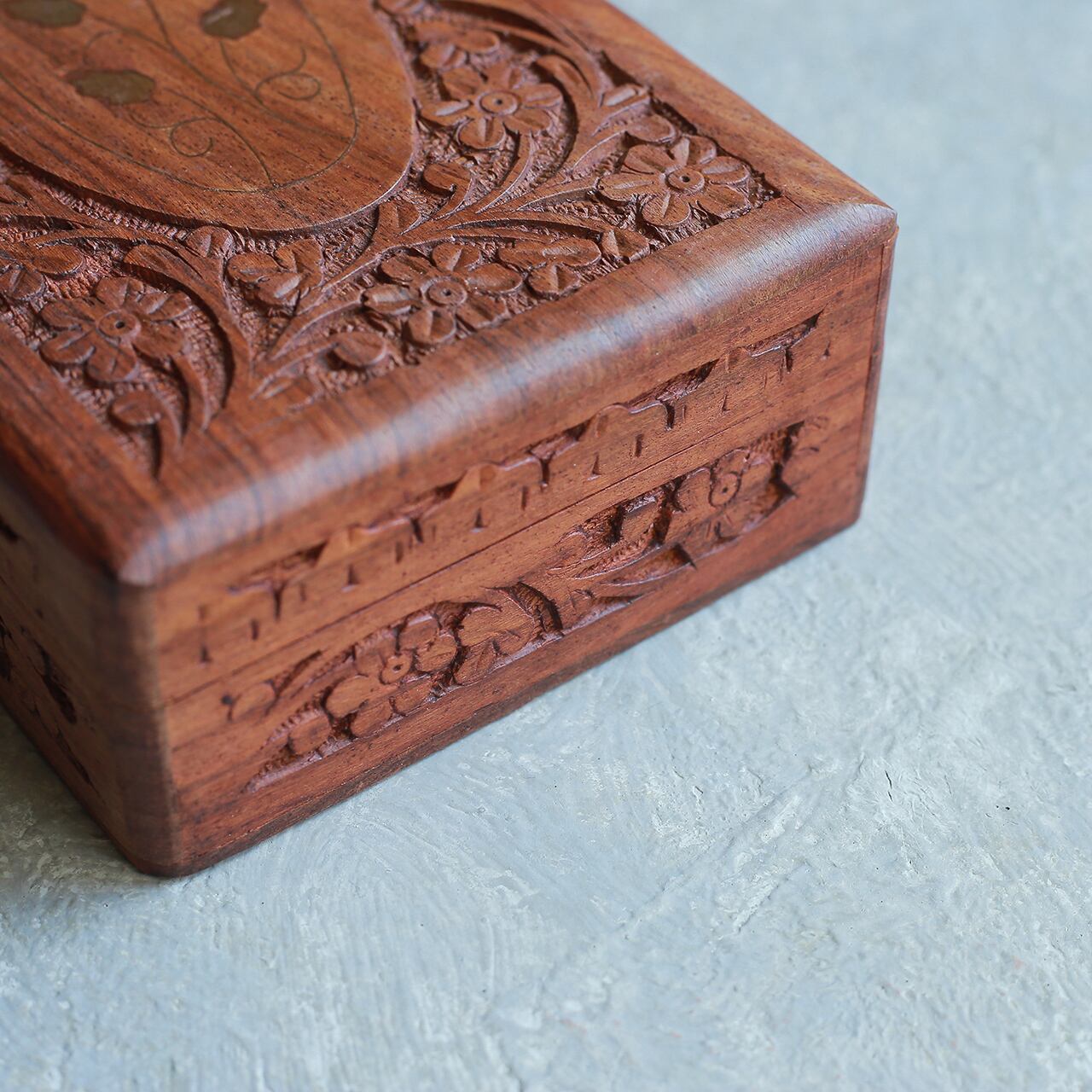 美しい模様の、木彫りの箱。