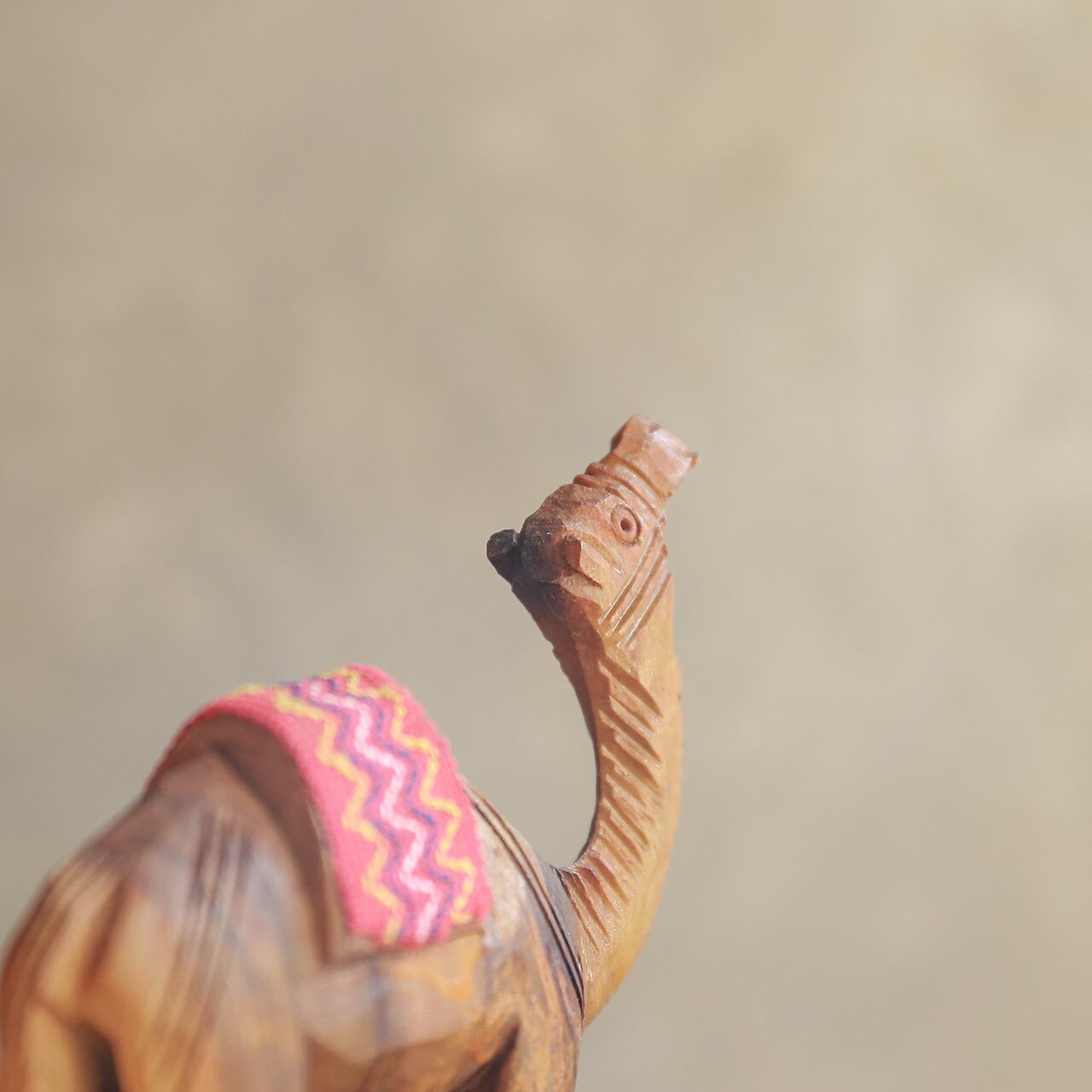 明日を見つめる、赤い馬布のラクダ