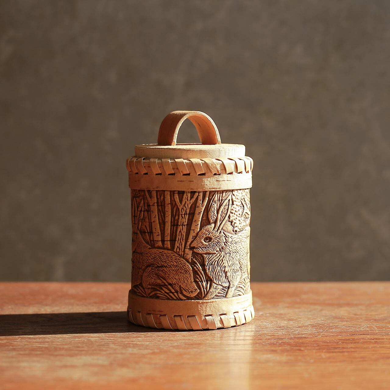 ウサギが描かれた、ロシアの白樺作りのベレスタ 1