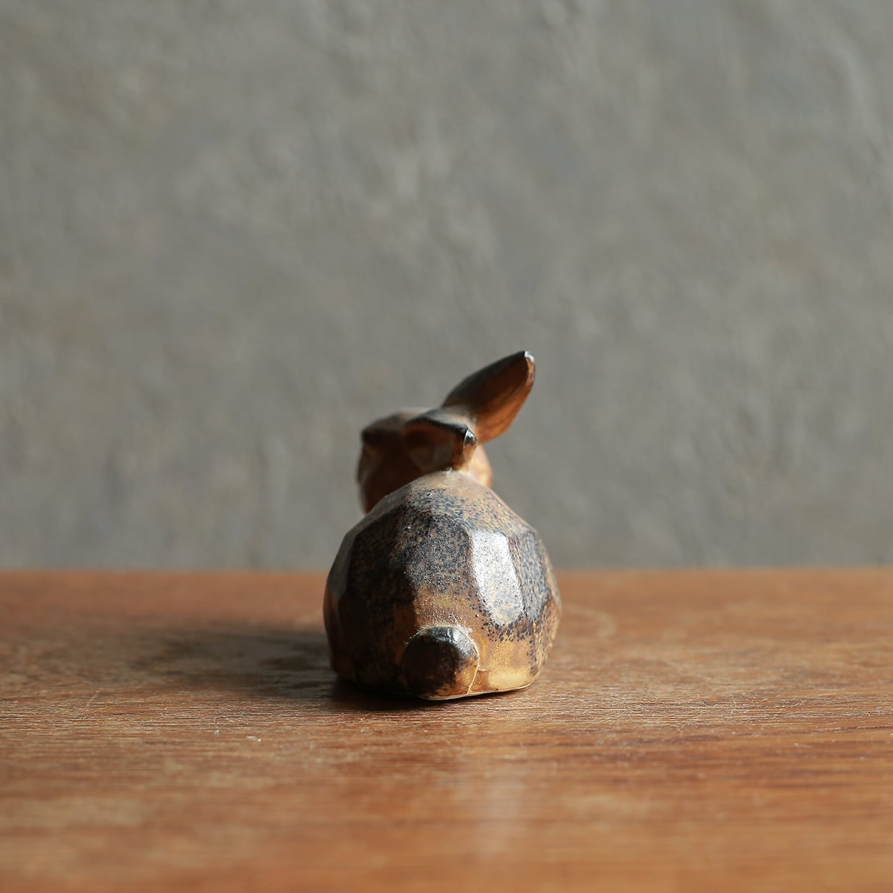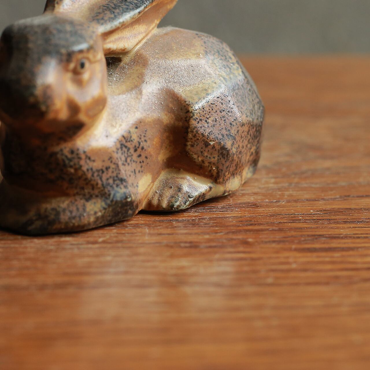 こちらを見つめる、休憩中の陶器のウサギ